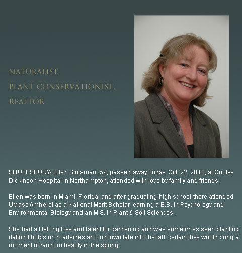 In lieu of flowers, contributions may be made to the New England Wildflower Society, of which Ellen was an active member in the field of endangered plant conservation, at 180 Hemenway Road, Framingham, MA, 01701-2699.